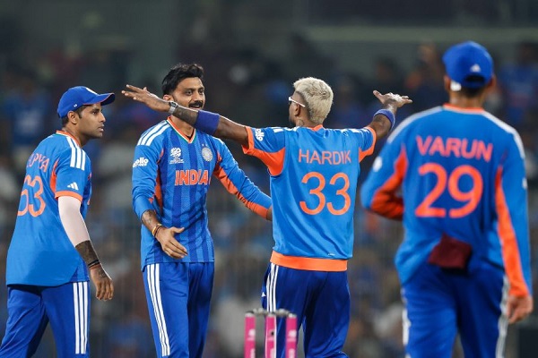 एमए चिदांबरम स्टेडियम में पहले बल्लेबाजी पर बाध्य टीम इंडिया को अभिषेक सहित शीर्ष क्रम के चारों बल्लेबाजों की आक्रामक पारियों के बाद हार्दिक पंड्या (नाबाद 50 रन, 23 गेंद, चार छक्के, दो चौके) व तिलक वर्मा (नाबाद 44 रन, 16 गेंद, चार छक्के, तीन चौके) के तूफानी प्रहारों का सहारा मिला और सह मेजबानों ने चार विकेट पर 256 रनों का विशाल स्कोर खड़ा कर दिया, जो टी20 विश्व कप इतिहास में दूसरा सबसे बड़ा, खुद भारत का सबसे बड़ा और मौजूदा संस्करण का सर्वोच्च स्कोर था।