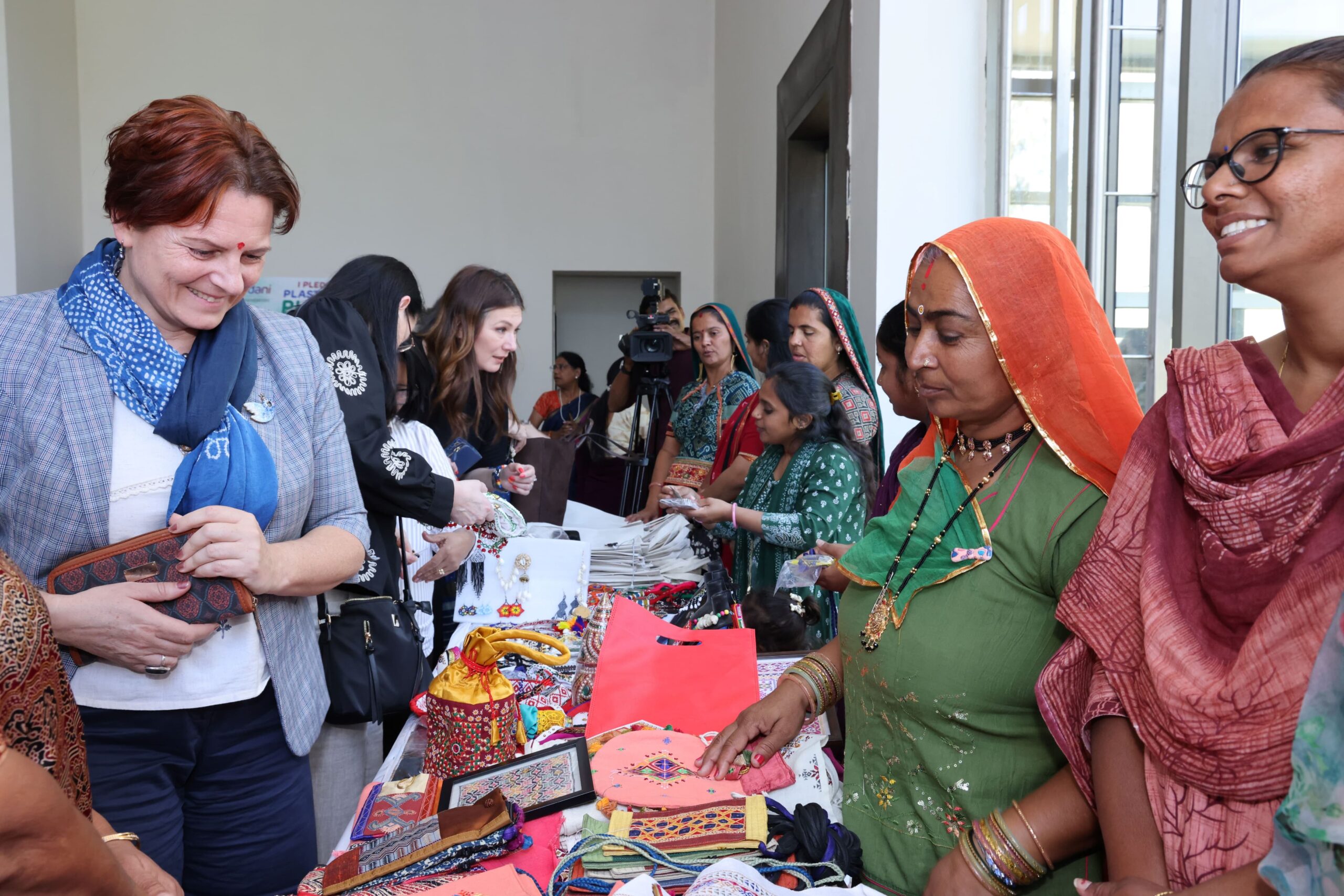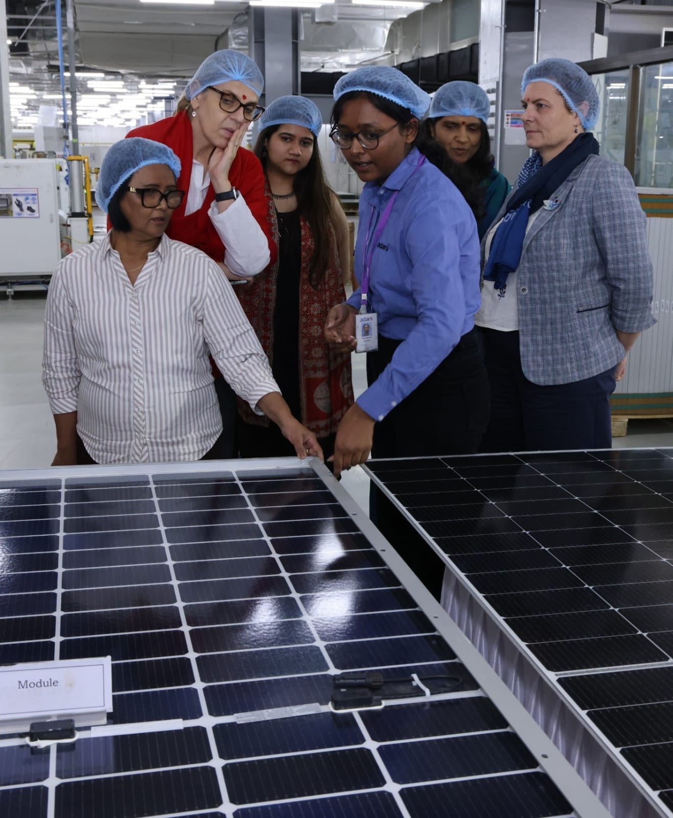 इसके बाद, प्रतिनिधिमंडल ने भारत के सबसे बड़े वाणिज्यिक बंदरगाह, मुंद्रा पोर्ट का दौरा किया, जो देश के कुल समुद्री माल का लगभग 11% और कंटेनर ट्रैफिक का 33% संभालता है। यहां उन्होंने मुंद्रा स्पेशल इकोनॉमिक ज़ोन (एसईजेड) में स्थित इलेक्ट्रॉनिक्स मैन्युफैक्चरिंग क्लस्टर (ईएमसी) का निरिक्षण किया, जहां वैश्विक कंपनियां एडवांस मैन्युफैक्चरिंग में निवेश कर रही हैं। इसके अलावा, उन्होंने अदाणी के अत्याधुनिक सोलर एनर्जी मैन्युफैक्चरिंग प्लांट का भी दौरा किया, जो भारत को रिन्यूएबल एनर्जी के क्षेत्र में आत्मनिर्भर बनाने में महत्वपूर्ण भूमिका निभा रहा है। इन स्थानों पर, राजदूतों ने वुमेन प्रोफेशनल्स और इंजीनियर्स से मुलाकात की, जो भारत के इंडस्ट्रियल, इकोनॉमिक और एनर्जी ट्रांसफॉरमेशन में योगदान दे रही हैं। इससे यह स्पष्ट होता है कि देश के विकास में महिलाओं की भूमिका लगातार बढ़ रही है।