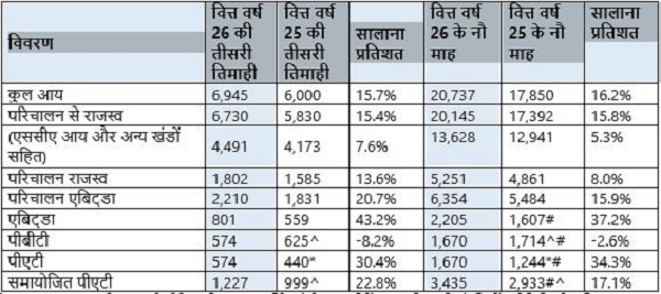 वित्त वर्ष 26 की तीसरी तिमाही और वित्त वर्ष 26 की नौ महीनों की मुख्य बातें :