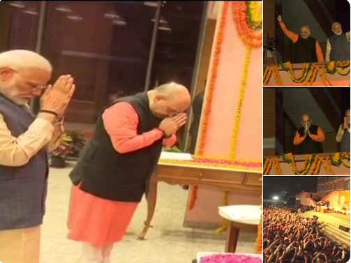 સતત બીજી વખત ભાજપ પૂર્ણ બહુમતી સાથે સરકાર બનાવવા જઈ રહ્યું છે. ભાજપની જંગી જીત બાદ વડાપ્રધાન નરેન્દ્ર મોદી ભાજપ મુખ્યમથક પર પહોંચ્યા હતા. તેમની સાથે સુષ્મા સ્વરાજ, શિવરાજસિંહ ચૌહાન, જે. પી. નડ્ડા, રાજનાથસિંહ જેવા ભાજપના દિગ્ગજ નેતાઓ પણ ભાજપના મુખ્યમથકમાં હાજર છે. વડાપ્રધાન નરેન્દ્ર મોદી અને ભાજપના અધ્યક્ષ અમિત શાહે શ્યામાપ્રસાદ મુખર્જી અને પંડિત દીનદયાલ ઉપાધ્યાયની પ્રતિમા પર માલ્યાર્પણ કર્યું હતું. અહીં ભાજપ અધ્યક્ષ અમિત શાહે પાર્ટીના કાર્યકર્તાઓને સંબોધિત કર્યા છે.