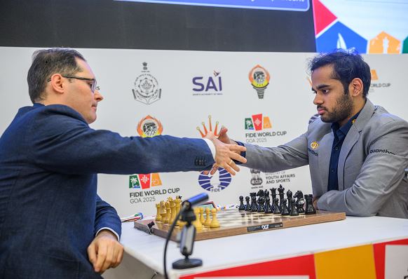 पणजी, 13 नवम्बर। भारत के तीन ग्रैंडमास्टर्स अर्जुन एरिगेसी, पेंटाला हरिकृष्णा और रमेशबाबू प्रज्ञानानंद का गुरुवार को यहां फिडे विश्व कप 2025 में चौथे दौर के टाईब्रेक में मिश्रित भाग्य रहा। इस क्रम में अर्जुन व हरिकृष्णा ने तो प्रतिद्वंद्वियों को मात देकर पूर्व क्वार्टर फाइनल में जगह बना ली। लेकिन प्रज्ञानानंद का सफर समाप्त हो गया।