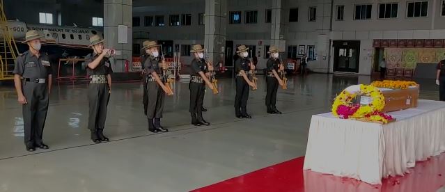 આજે સવારે તેમના પાર્થિવ દેહને અમદાવાદ એરપોર્ટ પર લાવવામાં આવ્યો હતો અને ત્યાં તેમને ગાર્ડ ઓફ ઓનર આપવામાં આવ્યું.