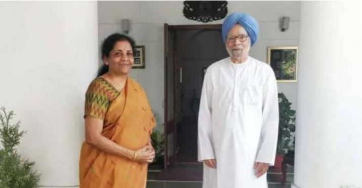 નવી દિલ્હી: કેન્દ્રીય નાણાં પ્રધાન નિર્મલા સીતારમણે ગુરુવારે ભૂતપૂર્વ વડાપ્રધાન ડૉ. મનમોહનસિંહ સાથે મુલાકાત કરી છે. માનવામાં આવે છે કે બંને નેતાઓ વચ્ચે બજેટને લઈને ચર્ચા થઈ છે. નાણાં પ્રધાન બન્યા બાદ નિર્મલા સીતારમણ આગામી પાંચમી જુલાઈએ પોતાના કાર્યકાળનું પ્રથમ બજેટ રજૂ કરશે. આ પહેલા નિર્મલા સીતારમણ તમામ સેક્ટરના એક્સપર્ટ્સને મળી રહ્યા છે અને તેમના સૂચનો લઈ રહ્યા છે.