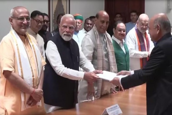 नई दिल्ली, 20 अगस्त। उप राष्ट्रपति पद के चुनाव में सत्तारूढ़ राष्ट्रीय जनतांत्रिक गठबंधन (NDA) के उम्मीदवार सीपी राधाकृष्णन ने आज अपना नामांकन दाखिल कर दिया। नामांकन दाखिले के वक्त राधाकृष्णन के साथ प्रधानमंत्री नरेंद्र मोदी, रक्षा मंत्री राजनाथ सिंह, गृह मंत्री अमित शाह, केंद्रीय मंत्री नितिन गडकरी व भाजपा अध्यक्ष जेपी नड्डा समेत एनडीए के कई अन्य सांसद मौजूद थे। इस दौरान पीएम मोदी उनके पहले प्रस्तावक बने।