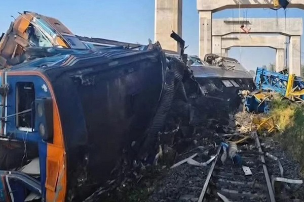 नई दिल्ली, 14 जनवरी। थाईलैंड में बुधवार की सुबह भयावह हादसा हुआ, जब सिखियो जिले में एक हाई-स्पीड रेल प्रोजेक्ट पर काम कर रही एक बड़ी कंस्ट्रक्शन क्रेन एक तेज रफ्तार पैसेंजर ट्रेन पर गिर गई। तेज टक्कर से ट्रेन के डिब्बे पटरी से उतर गए और बैंकॉक-उबोन रत्चाथानी सर्विस में आग लग गई। मीडिया रिपोर्ट के अनुसार हादसे में करीब 22 लोगों की मौत हुई है और 30 से ज्यादा लोग घायल बताए जा रहे हैं। इनमें कई की हालत गंभीर है। हादसे का शिकार हुई ट्रेन थाईलैंड के उबोन रत्चाथानी प्रांत जा रही थी।