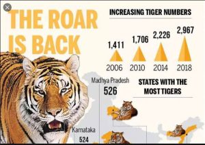 Madhya Pradesh has the highest number of tigers (526), followed by Karnataka (524). This close race between the two states should corroborate the accuracy of this estimation. MP thus regained the tag of Tiger State’ once again.