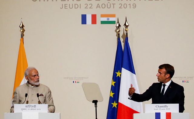 પેરિસમાં વડાપ્રધાન નરેન્દ્ર મોદી સાથે ગુરુવારે થયેલી દ્વિપક્ષીય વાતચીતમાં ફ્રાંસના રાષ્ટ્રપ્રમુખ ઈમેન્યુઅલ મેક્રોંએ સ્પષ્ટપણે કહ્યુ કે કાશ્મીર મામલામાં કોઈ ત્રીજા દેશે હસ્તક્ષેપ કરવો જોઈએ નહીં. આ ભારત અને પાકિસ્તાનની વચ્ચેનો મામલો છે. અમેરિકાએ જ્યાં ઘણીવાર કાશ્મીર મામલે મધ્યસ્થતાની વાત કહી છે. પરંતુ ફ્રાંસના રાષ્ટ્રપ્રમુખે કહ્યુ છે કે ન તો કોઈ આમા હસ્તક્ષેપ કરે અને ન તો હિંસા ભડકાવવાનું કામ કરે. ફ્રાંસે કાશ્મીર મામલા પર અત્યાર સુધી ખુલીને ભારતનું સમર્થન કર્યું છે.