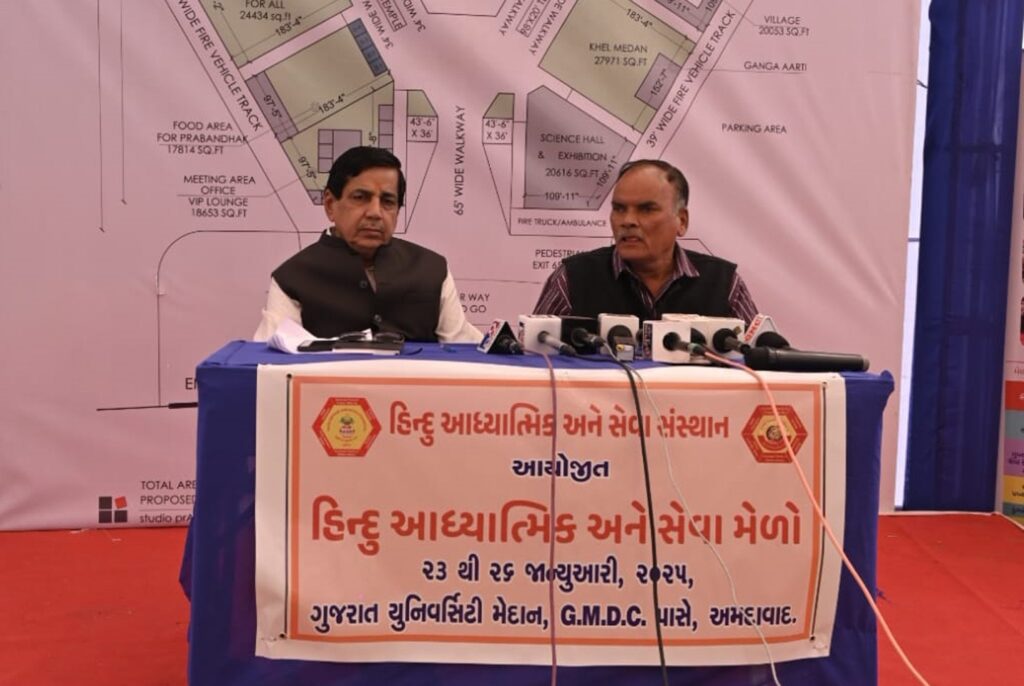 हिंदू आध्यात्मिक एवं सेवा संस्थान, गुजरात ने 23 जनवरी से 26 जनवरी, 2025 तक हिंदू आध्यात्मिक एवं सेवा मेला (एचएसएसएफ) का आयोजन किया है। अध्यात्म और सेवा का भव्य संगम यह मेला अहमदाबाद के हेलमेट सर्किल के पास गुजरात विश्वविद्यालय मैदान में आयोजित किया जाएगा। इस कार्यक्रम के बारे में विस्तृत जानकारी श्री घनश्याम व्यास (सचिव, एचएसएसएफ-गुजरात) द्वारा दी गई। उन्होंने कहा कि 23 जनवरी से 26 जनवरी 2025 तक चलने वाले इस मेले में विभिन्न सांस्कृतिक, धार्मिक और रचनात्मक विषयों का सुंदर संगम है।
