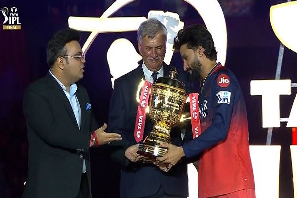 अहमदाबाद, 3 जून। रजत पादीदार की अगुआई वाले रॉयल चैलेंजर्स बेंगलुरु (RCB) को टाटा इंडियन प्रीमियर लीग (IPL-18) में सर्वजेता का गौरव अर्जित करने पर ट्रॉफी के साथ 20 करोड़ रुपये (24 लाख डॉलर) की राशि प्रदान की गई। वहीं उपजेता पंजाब किंग्स को 13 करोड़ रुपये मिले।