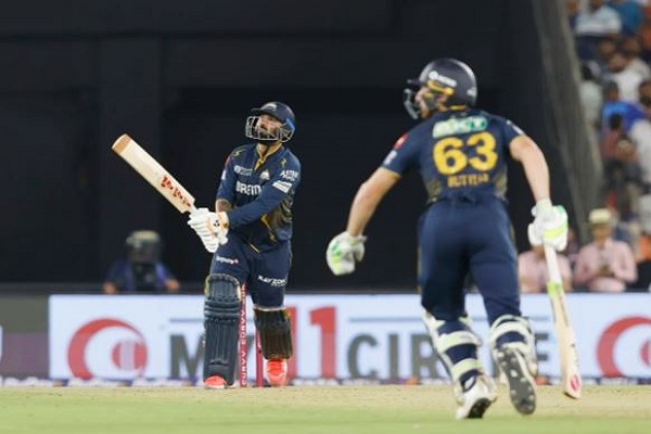 कठिन लक्ष्य का पीछा करते हुए गुजरात टाइटंस को पहला झटका दूसरे ही ओवर में लग गया, जब कप्तान शुभमन गिल (सात रन, पांच गेंद, एक चौका) 14 के योग पर रन आउट हो गए। लेकिन इसके बाद उतरे ‘प्लेयर ऑफ द मैच’ 34 वर्षीय बटलर ने ओपनर साई सुदर्शन (36 रन, 21 गेंद, एक छक्का, पांच चौके) संग 35 गेंदों पर 60 रन जोड़े तो शेरफेन रदरफर्ड (43 रन, 34 गेंद, तीन छक्के, एक चौका) के साथ 69 गेंदों पर 119 रनों की विद्युतीय साझेदारी से दल को लक्ष्य के करीब पहुंचा दिया। हालांकि 19वें ओवर में रदरफर्ड के लौटने के बाद आए राहुल तेवतिया (नाबाद 11 रन, तीन गेंद, एक छक्का, एक चौका) ने बटलर को शतक से वंचित किया और अंतिम ओवर में खुद मिचेल स्टार्क की पहली दो गेंदों पर छक्का व विजयी चौका जड़ दिया।