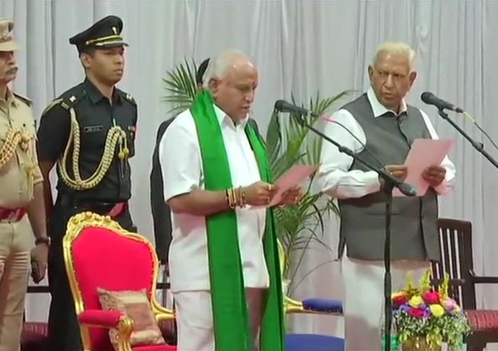 ભાજપના નેતા બી. એસ. યેદિયુરપ્પાએ કર્ણાટકના મુખ્યપ્રધાન તરીકે ચોથી વખત બેંગલુરુ ખાતે રાજભવનમાં શપથગ્રહણ કર્યા છે. તેમને રાજ્યપાલ વજુભાઈ વાળાએ શપથ ગ્રહણ કરાવ્યા છે. જો કે હાલ યેદિયુરપ્પાએ જ મુખ્યપ્રધાન તરીકે શપથ લીધા છે. જણાવવામાં આવે છે કે ફ્લોર ટેસ્ટ બાદ તેમના પ્રધાનો શપથગ્રહણ કરશે. આ પહેલા કર્ણાટકમાં સરકાર બનાવવા માટે ભાજપ તરફથી દાવો રજૂ કરવામાં આવ્યો અને રાજ્યના ગવર્નર સાથે ભાજપ વિધાયક દળના નેતા તરીકે ભાજપના પ્રદેશ પ્રમુખ બી. એસ. યેદિયુરપ્પાએ મુલાકાત કરીને સરકાર બનાવવાનો દાવો રજૂ કર્યો હતો. 434 દિવસ બાદ યેદિયુરપ્પાએ ફરીથી મુખ્યપ્રધાન પદે શપથ ગ્રહણ કર્યા છે.
