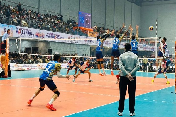 डॉ. संपूर्णानंद स्पोर्ट्स स्टेडियम (सिगरा) में नगर निगम के सहयोग से वाराणसी में पहली बार आयोजित प्रतियोगिता के सातवें दिन देर शाम पुरुष वर्ग के पहले सेमीफाइलन में रेलवे ने जबर्दस्त संघर्ष के बीच 3-2(22-25, 25-23, 21-25, 25-17, 15-13) की जीत हासिल की और गत उपजेता सर्विसेज की चुनौती तोड़ दी। फाइनल में रेलवे की टक्कर केरल से होगी, जिसने दिन के अंतिम सेमीफाइनल में पंजाब को सीधे सेटो में 3-0(25-23, 25-23, 25-22) से परास्त किया।