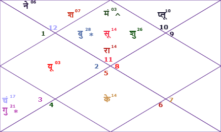 | सूर्य | ♒ कुंभ | शतभिषा | अभिनव और सामाजिक |
