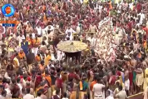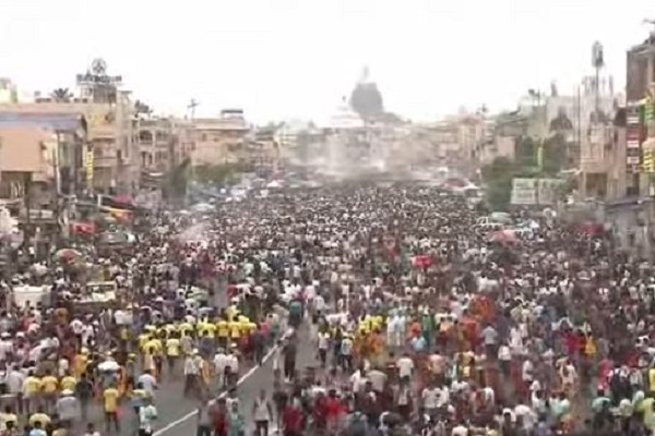 पुरी, 27 जून। विश्व प्रसिद्ध प्रभु जगन्नाथ रथ यात्रा को देखने के लिए शुक्रवार को पुरी में श्रद्धालुओं का सैलाब उमड़ पड़ा। भगवान जगन्नाथ अपने भाई बलभद्र और देवी सुभद्रा के साथ श्री जगन्नाथ मंदिर से गुंडिचा मंदिर तक की औपचारिक यात्रा पर निकले। रथ यात्रा से संबंधित सभी अनुष्ठान कई सुरक्षा बलों और जिला अधिकारियों के समन्वित प्रयासों से कड़ी सुरक्षा व्यवस्था के बीच तय कार्यक्रम के अनुसार आयोजित किए जा रहे हैं।
