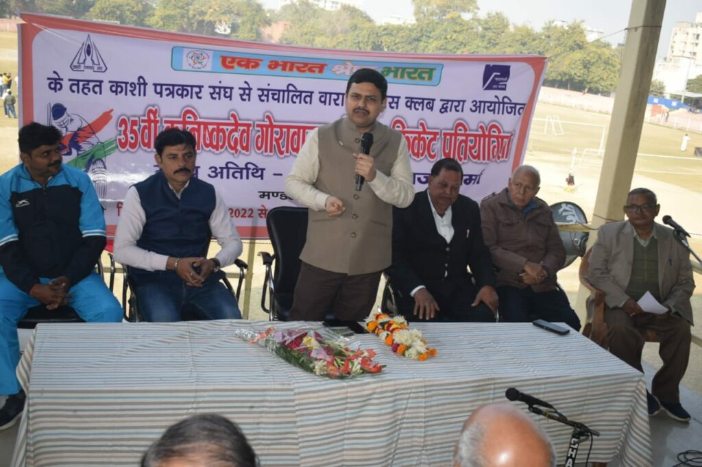 इसके पूर्व वाराणसी के मण्डलायुक्त कौशल राज शर्मा ने कनिष्कदेव गोरावाला के चित्र पर माल्यार्पण के उपरान्त दीप प्रज्जवलित कर प्रतियोगिता के उद्घाटन की औपचारिकता पूरी की और दोनों टीमों के खिलाड़ियों से परिचय प्राप्त किया। मुख्य अतिथि ने अपने उद्बोधन में वाराणसी के पत्रकार जगत की सकारात्मक भूमिका की सराहना की और कहा कि अन्य शहरों की अपेक्षा यह अच्छी बात काशी में दिखाई देती है। उन्होंने कहा कि पत्रकार संघ न केवल पत्रकारिता करता है बल्कि सामाजिक सरोकारों में भी बढ़ चढ़ कर भाग लेता है। यह प्रशंसनीय है।