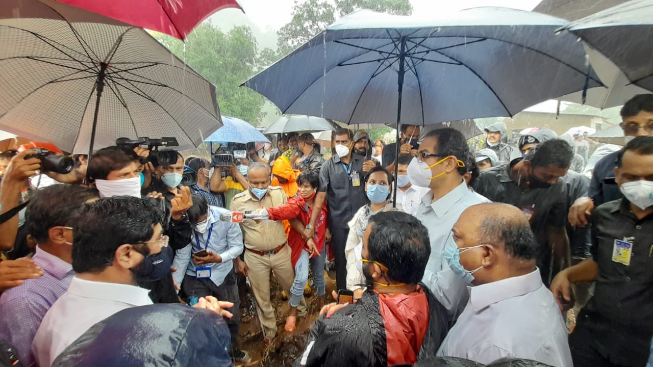 इस बीच महाराष्ट्र के मुख्यमंत्री उद्धव बालासाहेब ठाकरे ने शनिवार को कुछ प्रभावित इलाकों का दौरा किया और पीड़ितों को हरसंभव मदद का आश्वासन दिया। विभिन्न प्रभावित इलाकों को पहले ही हवाई सर्वेक्षण कर चुके ठाकरे रायगढ़ कई शीर्ष अधिकारियों के साथ रायगढ़ पहुंचे, जहां भूस्खलन की वजह से अब तक 44 लोग अपनी जान गंवा चुके हैं और कई लोग अब भी लापता बताए जा रहे हैं।