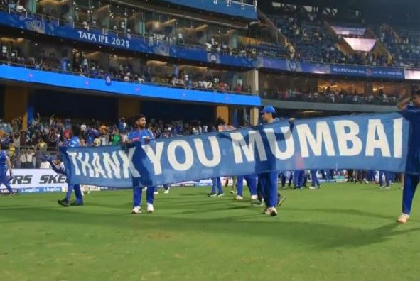 A sea of blue. A salute of gratitude 💙#MI walk the Wankhede one last time this season, with a playoff ticket in hand 🏟#TATAIPL | #MIvDC | @mipaltan pic.twitter.com/yHX3m4cYH3