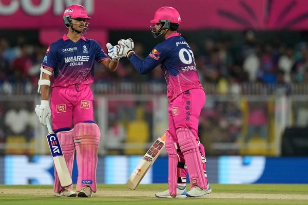 राजस्थान के दूसरे घरेलू मैदान पर पहले बल्लेबाजी के लिए आमंत्रित राजस्थान रॉयल्स ने ‘प्लेयर ऑफ द मैच’ यशस्वी व उनके किशोरवय सलामी जोड़ीदार वैभव सूर्यवंशी (39 रन, 14 गेंद, पांच छक्के, एक चौका) के बीच सिर्फ 30 गेंदों पर हुई धुआंधार 80 रनों की साझेदारी की मदद से 11 ओवरों में तीन विकेट पर 150 रनों का विशाल स्कोर खड़ा कर दिया।