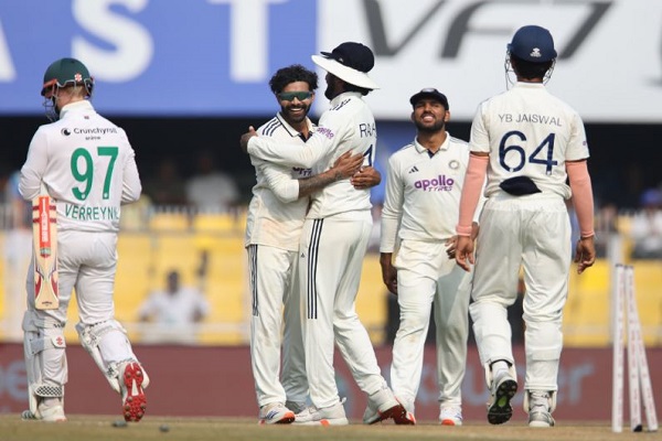 फिलहाल, मोहम्मद सिराज (2-106) ने अंतिम सत्र की शुरुआत में ही 97 रनों की साझेदारी तोड़ी, जब मुथुसामी को फाइन लेग में यशस्वी ने पकड़ लिया (8-431)। इसके बाद कुलदीप यादव (4-115) ने यान्सेन को बोल्ड किया और बुमराह (2-75) ने साइमन हार्मर (पांच रन) को बोल्ड मारकर मेहमान पारी समाप्त की। यानी अंतिम दो विकेट पर भी 58 रन जुड़ गए। केशव महाराज 12 रनों पर नाबाद लौटे।