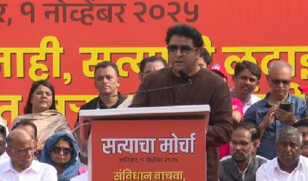 मुंबई, 1 नवम्बर। शिवसेना (UBT) नेता उद्धव ठाकरे, राष्ट्रवादी कांग्रेस पार्टी (SP) प्रमुख शरद पवार, कांग्रेस नेता बालासाहेब थोराट और महाराष्ट्र नवनिर्माण सेना (MNS) के अध्यक्ष राज ठाकरे सहित महा विकास अघाड़ी (MVA) में शामिल अन्य दलों के नेताओं ने मतदाता सूची में कथित अनियमितताओं के खिलाफ शनिवार को मुंबई में एक विशाल प्रोटेस्ट मार्च निकाला।