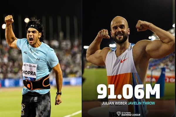 दोहा, 16 मई। ओलम्पिक खेलों में दोहरे पदक विजेता भारत के स्टार भाला प्रक्षेपक नीरज चोपड़ा आखिरकार 90 मीटर की बाधा पार करने में सफल रहे। इस क्रम में शुक्रवार की शाम उन्होंने डायमंड लीग के दोहा चरण में 90.23 मीटर का प्रक्षेप किया, लेकिन यह प्रयास उन्हें स्वर्ण पदक दिलाने के लिए पर्याप्त नहीं था और वह जर्मनी के जूलियन वेबर के बाद दूसरा स्थान पा सके। वेबर ने अपने आखिरी प्रयास में 91 . 06 मीटर के प्रक्षेप से बाजी मार ली।