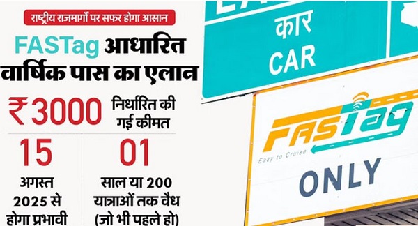 फास्टैग को लेकर नितिन गडकरी की बड़ी घोषणा –  3000 रुपये का वार्षिक पास जारी करेगी सरकार, 15 अगस्त से होगा प्रभावी