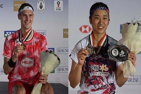नई दिल्ली, 19 जनवरी। पेरिस ओलम्पिक चैम्पियनद्वय डेनमार्क के विक्टर एक्सेलसन और दक्षिण कोरिया की एन से यंग ने रविवार को यहां इंदिरा गांधी स्टेडियम के केडी जाधव इनडोर हॉल में संपन्न योनेक्स-सनराइज इंडिया ओपन 2025 में पुरुष व महिला एकल खिताब अपने नाम कर लिए।