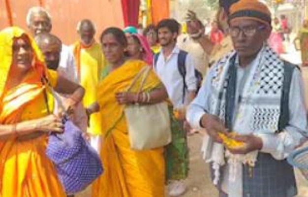 श्रद्धालुओं पर पुष्प वर्षा के बीच ‘जय श्रीराम’ का नारा भी लगाया