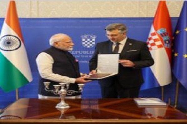 जाग्रेब (क्रोएशिया), 18 जून। तीन देशीय दौरे के अंतिम चरण में बुधवार को क्रोएशिया पहुंचे प्रधानमंत्री नरेंद्र मोदी ने जाग्रेब में अपने क्रोएशियाई समकक्ष आंद्रेज प्लेंकोविच के साथ सार्थक बातचीत की, जिसमें दोनों पक्ष रक्षा और सुरक्षा, फार्मा, नवीकरणीय ऊर्जा और आईटी के क्षेत्रों में मिलकर काम करने पर सहमत हुए। पीएम मोदी ने बाद में राष्ट्रपति ज़ोरान मिलनोविच से भी मुलाकात की। उन्होंने क्रोएशियाई प्रधानमंत्री के साथ शहर के चौक की सैर भी की।