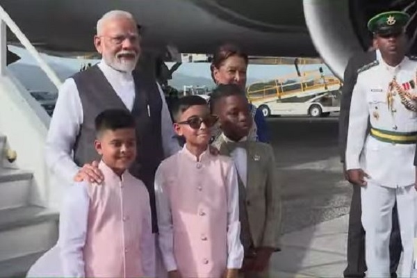 पोर्ट ऑफ स्पेन, 4 जुलाई। प्रधानमंत्री नरेंद्र मोदी अपनी पांच देशों की आधिकारिक यात्रा के दूसरे चरण में गुरुवार को अपराह्न (स्थानीय समयानुसार) त्रिनिदाद और टोबैगो पहुंचे। राजधानी पोर्ट ऑफ स्पेन पहुंचने पर पीएम मोदी का ऐतिहासिक स्वागत हुआ।
