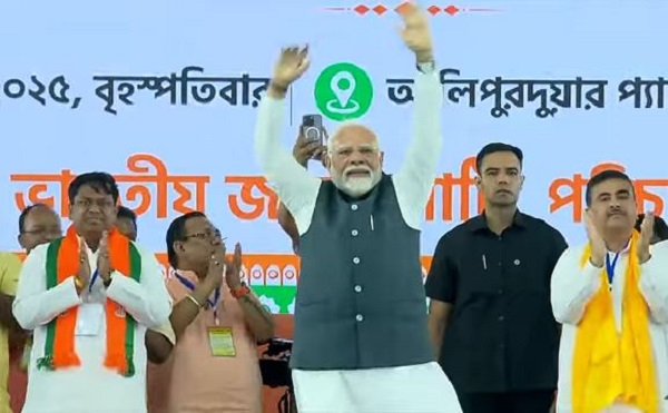 पीएम मोदी ने अलीपुरद्वार में एक गैस वितरण परियोजना की आधारशिला रखने के बाद जनसभा को संबोधित करते हुए कहा कि 21वीं सदी में भारत नए सामर्थ्य के साथ समृद्धि की नई गाथा लिख रहा है। आज देश का हर नागरिक भारत को विकसित राष्ट्र बनाने के लिए दिन-रात जुटा है।
