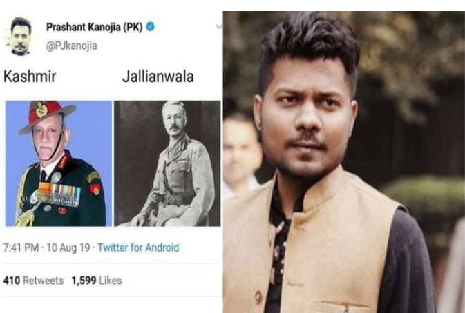 પ્રશાંત કનૌજિયાએ શનિવારે 10મી ઓગસ્ટે આર્મી ચીફને લઈને વિવાદીત ટ્વિટ કર્યું હતું, તેના પછી તેની વિરુદ્ધ યૂઝર્સની આકરી પ્રતિક્રિયાઓ આવી હતી. આમ આદમી પાર્ટીના બળવાખોર નેતા કપિલ મિશ્રાએ પ્રશાંત કનૌજિયાના આ ટ્વિટનો સ્ક્રીનશોટ શેયર કરીને લખ્યું કે જ્યારે યોગીજીએ આ ગદ્દારની ધરપકડ કરી હતી તો દેશના મોટામોટા પત્રકારો તેને બચાવવા આવી ગયા. આજે આ નમકહરામ, માતૃદ્રોહી, ગદ્દાર દેશના સેનાધ્યક્ષની તુલના જનરલ ડાયર સાથે કરી રહ્યો છે. આ ગદ્દારની જગ્યા આગ્રાની તે જેલમાં છે, જ્યાં દેશદ્રોહીઓનો ગેરેન્ટીથી ઈલાજ ચાલુ છે.