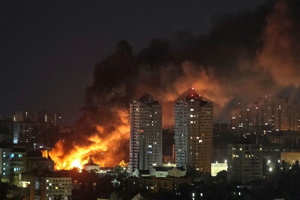 तकाचेंको ने ‘टेलीग्राम पर लिखा, ‘‘हमारे वायु रक्षा दल हर संभव प्रयास कर रहे हैं, लेकिन हमें एक-दूसरे की रक्षा करनी होगी- सुरक्षित रहें।’’ प्राधिकारियों ने कई जिलों में नुकसान होने की सूचना दी है और बचावकर्मी कई स्थानों पर राहत एवं बचाव कार्यों में जुटे हैं। सोलोमियांस्की जिले में 16 मंजिला आवासीय इमारत की 11वीं मंजिल पर आग लग गई।