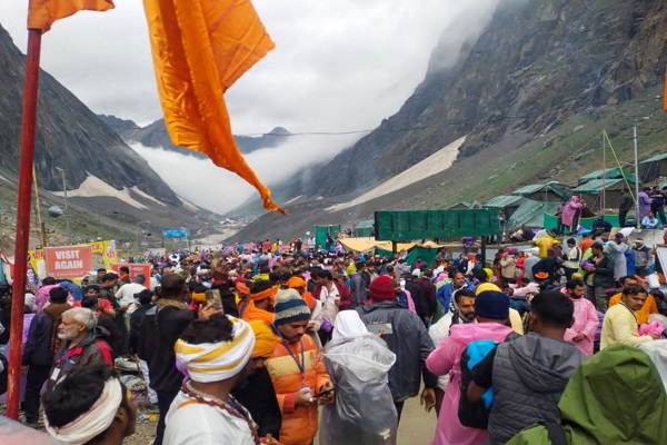 दो रास्तों से पवित्र गुफा तक पहुंच रहे श्रद्धालु