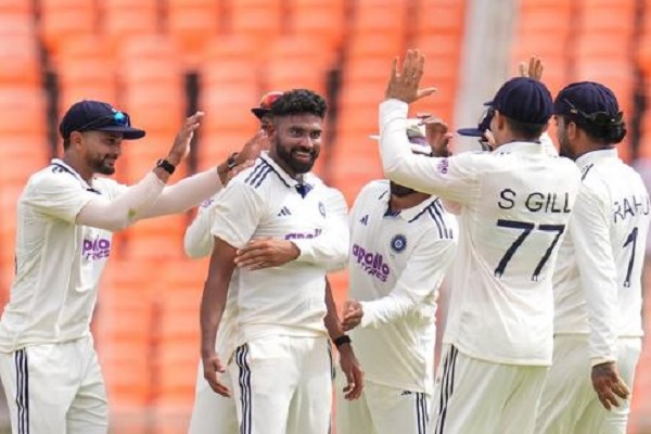 इस क्रम में पेसरद्वय मो.सिराज (4-40) व जसप्रीत बुमराह (3-42) ने नरेंद्र मोदी स्टेडियम की हरियाली पिच का भरपूर फायदा उठाया और मेहमानों की पहली पारी चाय के ठीक पहले 44.1 ओवरों में 162 रनों पर ही समेट दी। बारिश से बाधित अंतिम सत्र में भारत ने ओपनर केएल राहुल के नाबाद अर्धशतक (53 रन, 114 गेंद, छह चौके) की मदद से स्टंप्स तक 38 ओवरों में दो विकेट पर 121 रन बनाए।