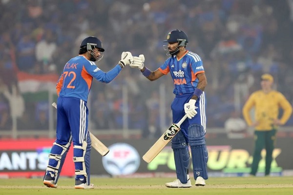 नरेंद्र मोदी स्टेडियम में शुक्रवार की रात सिक्के की उछाल गंवाने वाली सूर्या एंड कम्पनी को तिलक वर्मा (73 रन, 42 गेंद, एक छक्का, 10 चौके) व ‘प्लेयर ऑफ द मैच’ हार्दिक पंड्या (63 रन, 25 गेंद, पांच छक्के, पांच चौके) की विस्फोटक अर्धशतकीय पारियों का सहारा मिला और बोर्ड पर 5-231 रनों का पहाड़ सरीखा स्कोर टंग गया।