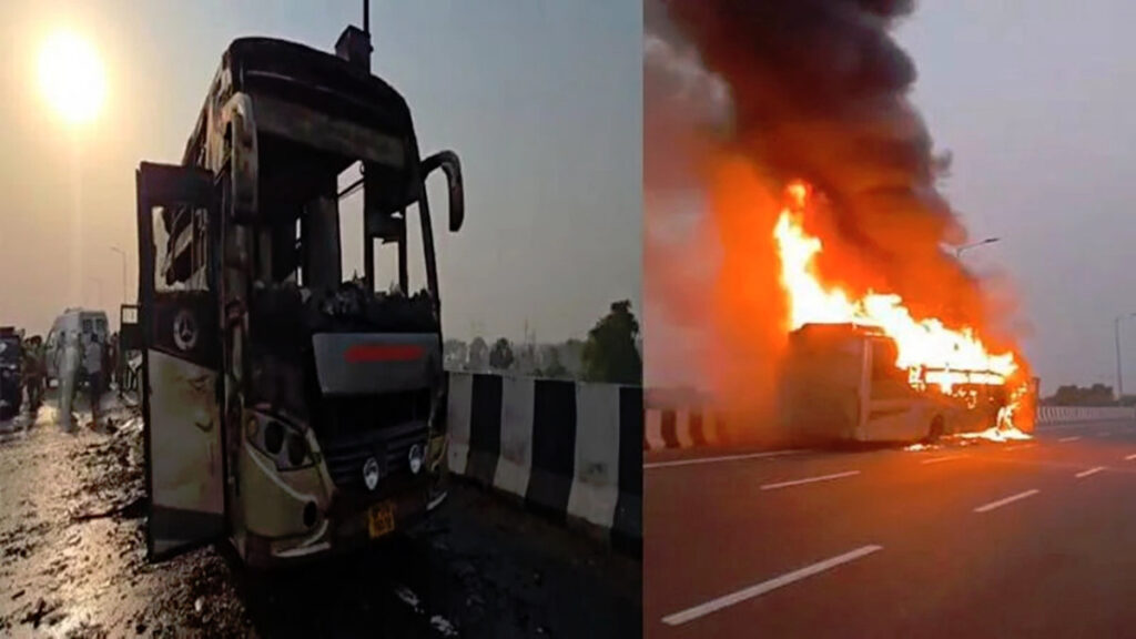 लखनऊ, 15 अप्रैल। बिहार से दिल्ली जा रही एक निजी बस में आज सुबह लखनऊ के मोहनलालगंज इलाके में किसान पथ पर बस में आग लगने से दो बच्चों समेत पांच लोगों की मौत हो गयी। पुलिस अधिकारी ने यह जानकारी दी। अपर पुलिस आयुक्त (मोहनलालगंज) रजनीश वर्मा ने बताया कि बिहार के बेगूसराय से दिल्ली जा रही एक निजी बस में सुबह करीब पांच बजे अचानक आग लग गयी ।