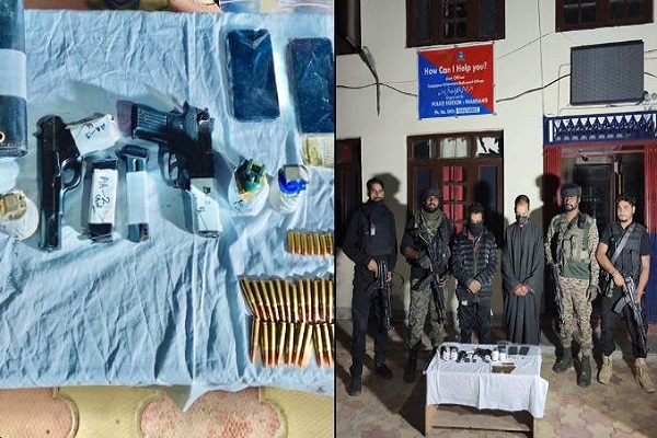 गिरफ्तार किए गए आतंकवादी सहयोगियों की पहचान डीके पोरा के जाहिद अहमद शेख और कठवा के अनवर खान के रूप में हुई है। उनके पास से दो पिस्तौल, दो मैगजीन, दर्जनों राउंड, दो ग्रेनेड और अन्य आपत्तिजनक सामग्री बरामद की गई है।