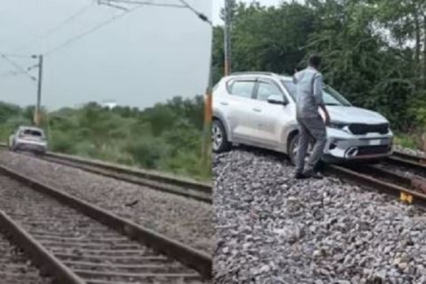 महिला ने रेलवे ट्रैक पर दौड़ा दी कार, लोगों ने बचाई जान