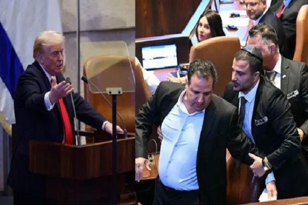 तेल अवीव, 13 अक्टूबर। इजराइल की संसद में सोमवार को उस वक्त अफरा-तफरी मच गई, जब अमेरिकी राष्ट्रपति डोनाल्ड ट्रंप के भाषण के दौरान उनके सामने दो सांसदों ने फलस्तीन को मान्यता देने की मांग करते हुए उनका विरोध किया। हंगामे के कारण ट्रंप को कुछ देर के लिए अपना भाषण रोकना पड़ा। इसके बाद दोनों विपक्षी सांसदों – ओफर कासिफ और अयमान ओदेह को संसद से निकाल दिया गया।