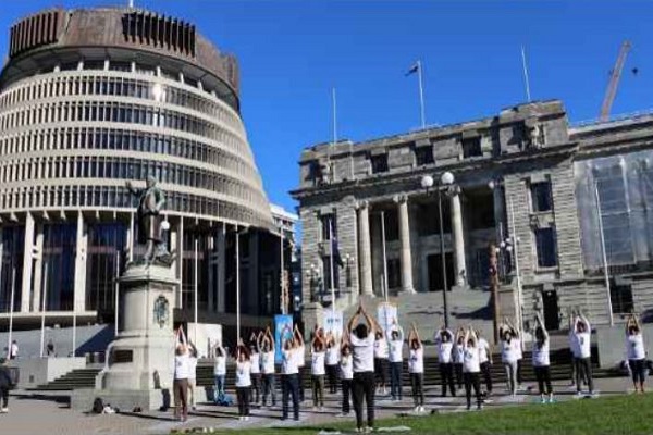 न्यूजीलैंड की राजधानी वेलिंगटन में भारतीय उच्चायोग परिसर में आयोजित कार्यक्रम में 150 से अधिक योग प्रेमियों ने भाग लिया। इनमें कीवी, भारतीय और अंतरराष्ट्रीय समुदायों के लोग शामिल थे। यह आयोजन हर्टफुलनेस, हिन्दू स्वयंसेवक संघ और आर्ट ऑफ लिविंग फाउंडेशन के सहयोग से हुआ। कार्यक्रम के मुख्य अतिथि न्यूजीलैंड के पूर्व गवर्नर आनंद सत्यानंद थे। भारतीय उच्चायोग ने न्यूजीलैंड की संसद में आयोजित योग सत्र की तस्वीरें और वीडियो भी सोशल मीडिया पर साझा किए, जिससे वहां की भागीदारी की झलक मिली।